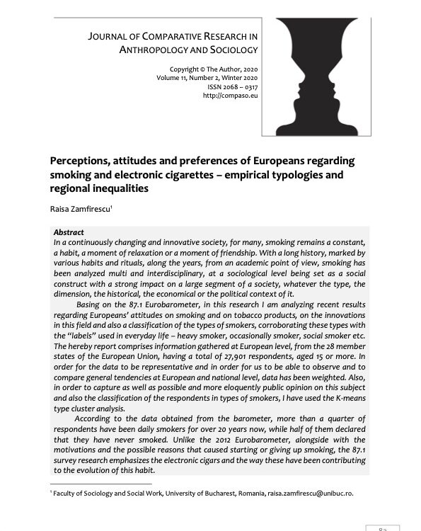 November 2, 2020Categories Articles PublicationsPerceptions, attitudes and preferences of Europeans regarding smoking and electronic cigarettes